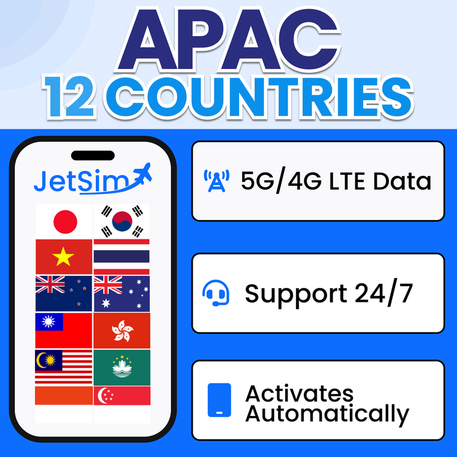 Asia-Pacific 12 Countries 1GB/Day Plan SIM | JetSim