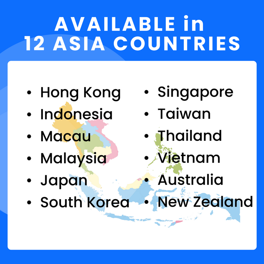 - Country: Vietnam, Hong Kong, Macau, Taiwan, Malaysia, Indonesia, Thailand, Singapore, Australia, New Zealand, Japan, & South Korea